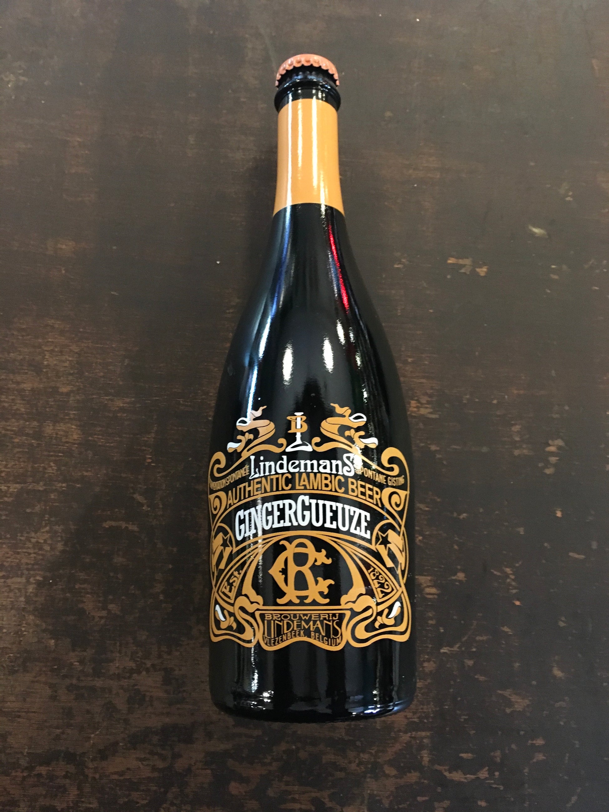 A blend of 12-month-old lambic with two- to three-year-oldl-lambic, fermented in oak with fresh ginger.